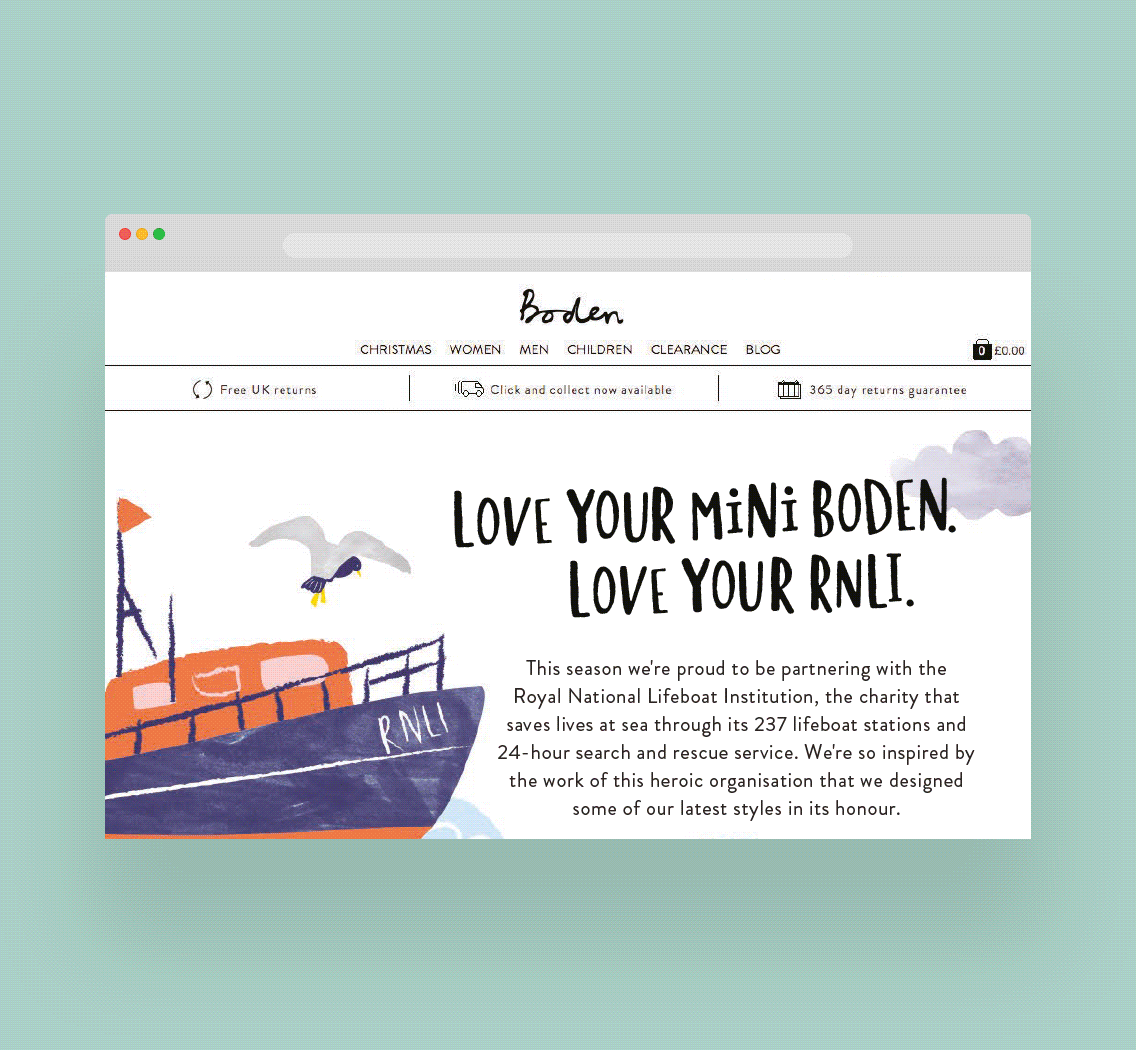 Mini Boden X RNLI Campaign Lead designer on the campaign, from concept through to execution, bringing it to life across print, social, email, and web with custom-designed and illustrated assets.